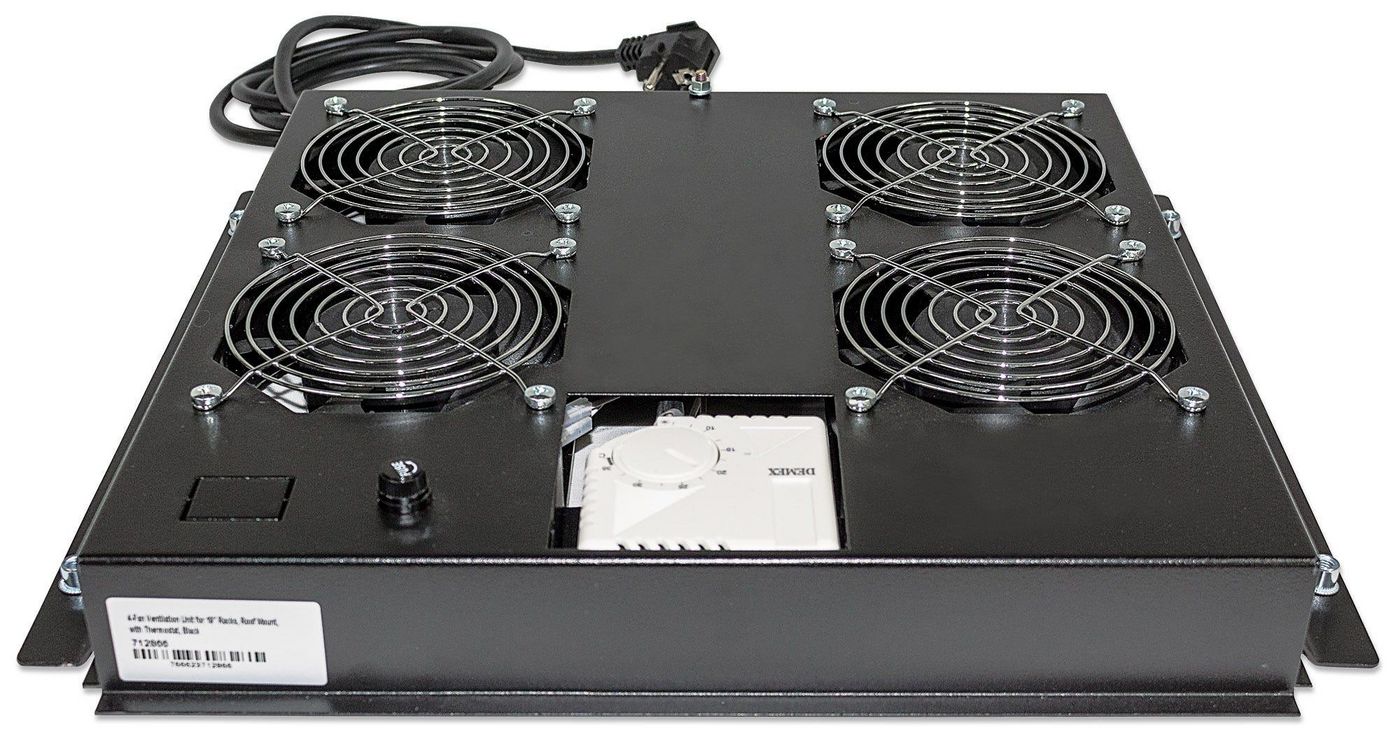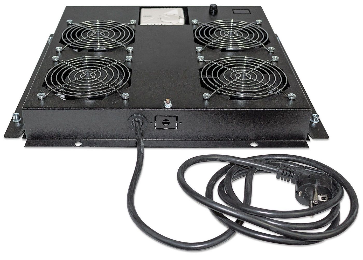 Intellinet 4-Fan Ventilation Unit for 19" Racks, Roof Mount, with Thermostat, Black (with Euro 2-pin plug)